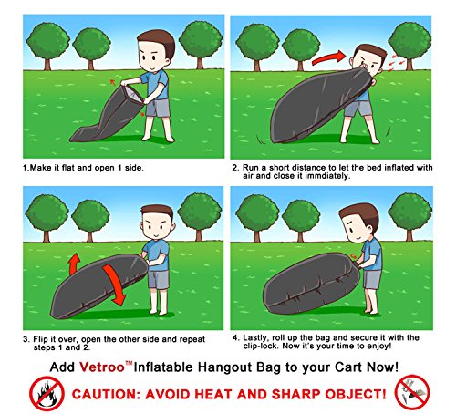 Vetroo Outdoor Inflatable Hangout Portable Bag Lounger - BLACK - Made with High Quality Nylon Fabric - Suitable For Camping, Pool, Beach Couch Sofa, Dream Chair Garden Cushion, Sleeping Air Bed