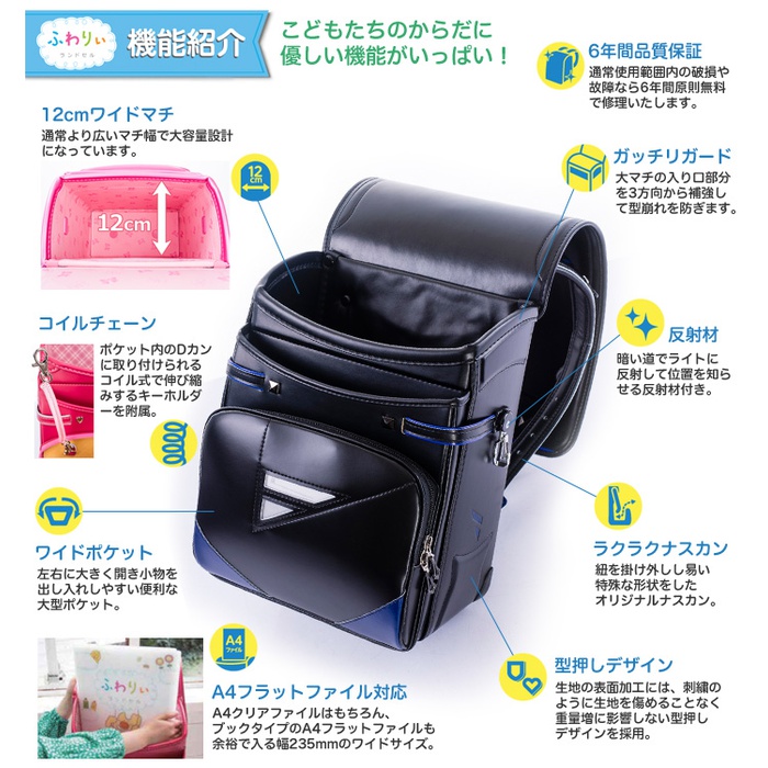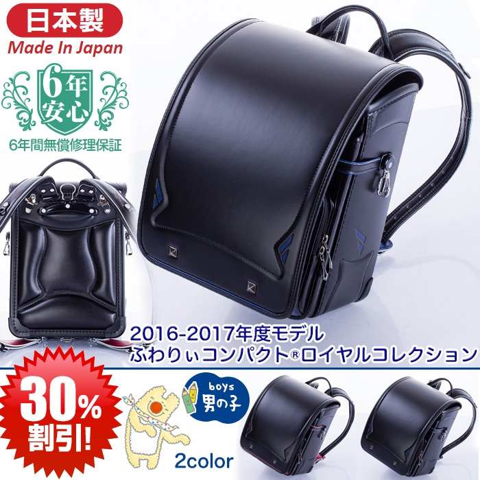 원본상품명: 型落ち特?30%OFF ふわりぃ ランドセル 男の子 ブラック 2016年度-2017年度モデル ふわりぃコンパクト タフロック ロイヤルコレクション 6年保?付き(送料無料/沖?除く)