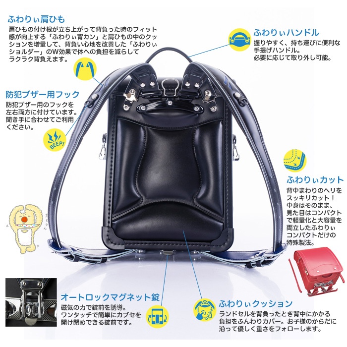 란도세루(초등학생이 어깨에 매는 가방)를 짊어진 때 등에 걸리는 부담을 부드럽게 커버.