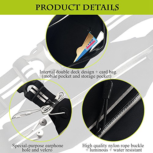 Large Capacity: Fully upgraded space it's roomy enough for your big phone even put into OtterBox case. You also can put into your key fob, wallet, tissue etc. It's more usefull for your exercise including running, walking, working out at the gym and more
