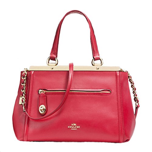 -. Brand : Coach -. Color : Red -. Department : womens -. EAN : 0889532509492 -. Feature : Details Smooth leather Inside zip and multifunction pockets Zip-top closure, fabric lining Handles with 6" drop Outside zip pocket Detachable strap with 19" drop for shoulder or crossbody wear 15 3/4" (L) x 8 3/4" (H) x 5 1/4" (W) -. ProductGroup : Shoes -. ProductTypeName : HANDBAG -. Size : Large -. Title : Coach Satchel in Smooth Leather Red Handbag Top handle -. UPC : 889532509492