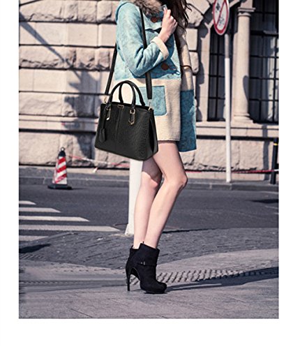 SIFINI Women Litchi Pattern PU Leather Top-handle Cross Body Handbag Purse Durable Tote Bag