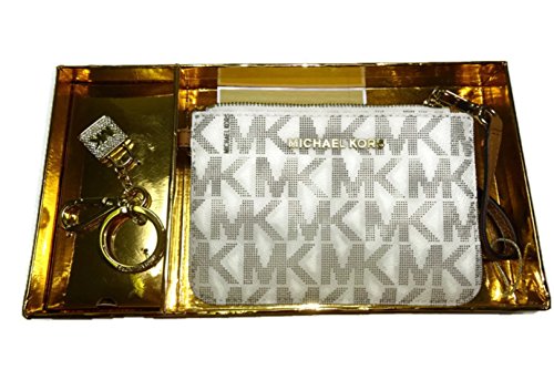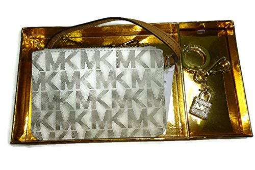 Michael Kors Women's On The Go Wristlet and Key Chain Gift Set, Vanilla MK