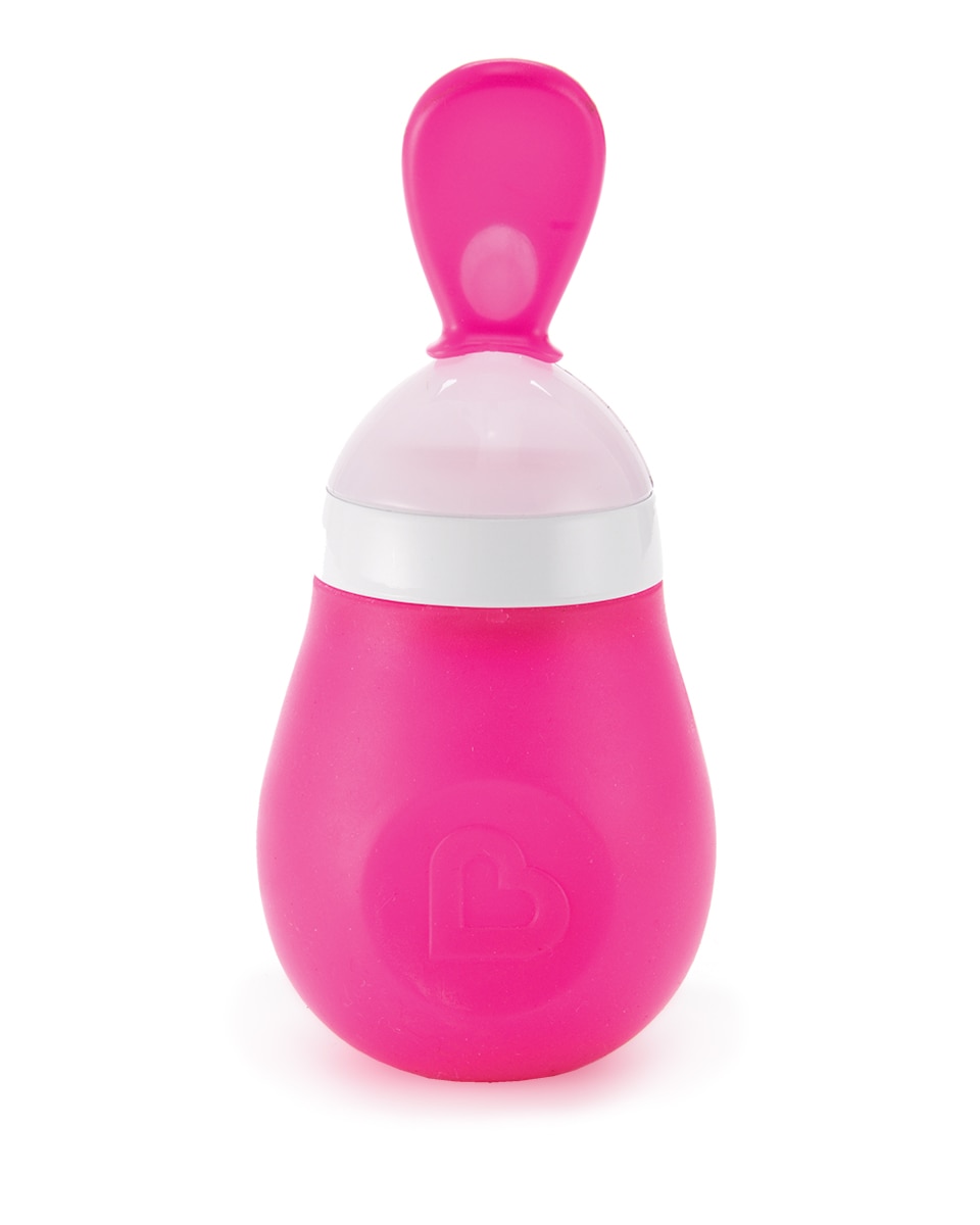 Feeding baby can be a very messy affair, and sometimes that squeezes out all the fun of introducing solid foods. Munchkin's new Squeeze™ spoon helps contain the mess to make feeding stress- and mess-free, especially while on-the-go. Simply fill the squeezable base with pureed baby food (homemade or store-bought), and twist on the spoon tip. Then, just squeeze the food directly into the spoon and recap when feeding time is done. For busy, on-the-go moms, this is a convenient, can't-live-without-it solution for easy peasy mealtime fun.
