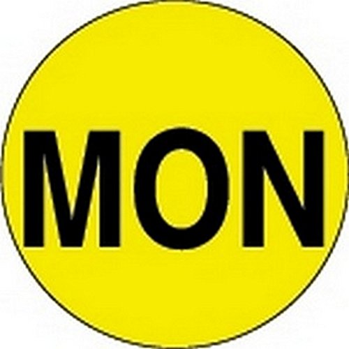 Generic DL6501 "MON" Days of the Week Labels, 1" Circle, Fluorescent Yellow