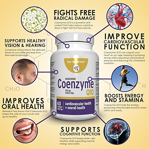 -. Feature : GET & STAY WELL. Coenzyme Q10 (CoQ10) is a substance similar to a vitamin. It is found in every cell of the body. Your body makes CoQ10, and your cells use it to produce energy your body needs for cell growth and maintenance. It also functions as an antioxidant, which protects the body from damage caused by harmful molecules. / 100% NATURAL & NO SUGAR. Natural Kaneka Ubiquinone. No yeast, wheat gluten, soy protein, milk/dairy, corn, sodium, sugar, starch, artificial coloring or flavoring. / EASY TO SWALLOW. Get 100 mg per day of CoQ10 in easy to swallow 1000 mg softgels / IMPROVE YOUR ENERGY LEVELS. From moment to moment, we are burning energy and aging. As a result, free radicals are produced in our bodies which will damage all cells, including vessel walls, nerve tissue, and the linings of our organs. Additionally, environmental toxins that enter into our bodies can also cause damage and increase oxidant levels, allowing a further breakdown of our bodies' cells and repair mechanisms. Despite the aging process, every cell in the body is in the business of producing energy to keep you vital and healthy. CoQ10 not only helps to support your body's energy production, but it's also considered one of the strongest antioxidants available. It has the ability to protect your body's cells from damage caused by oxidative stress and free radicals. CoQ10 sopps up the oxidants causing the damage; removing oxidant attack allows your body to repair and restore health. / MANUFACTURER GUARANTEE: As a premium brand manufacturer, Nutratec Life Sciences proudly stands behind our See Yourself CoQ10. All of our natural health products are manufactured at our pharmaceutical grade facilities and backed by a 100% full satisfaction money back guarantee. Nutratec Life Sciences allows our customers to try our products RISK FREE. No questions asked refunds, and keep the bottle. Order your CoQ10, and boost your body's CoQ10 levels - your body will thank you. We care about your health...