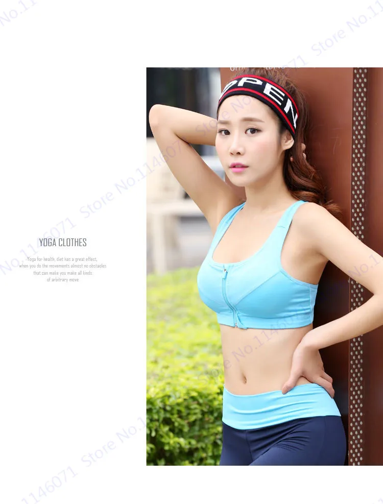 Feature1:Sexy Push-up Yoga Sports Bra Solid Blue Seamless Compression Crop Tops
