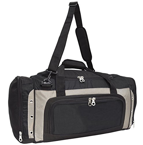 -. Feature : 600D polyester and 420D ripstop nylon / U shape double zipper compartment, zipper shoe compartment / front and end zipper pockets and 6 ventilation grommets / carrying handles with velcro handgrip / detachable adjustable shoulder strap with sewn in shoulder pan and sewn in bottom board for support
