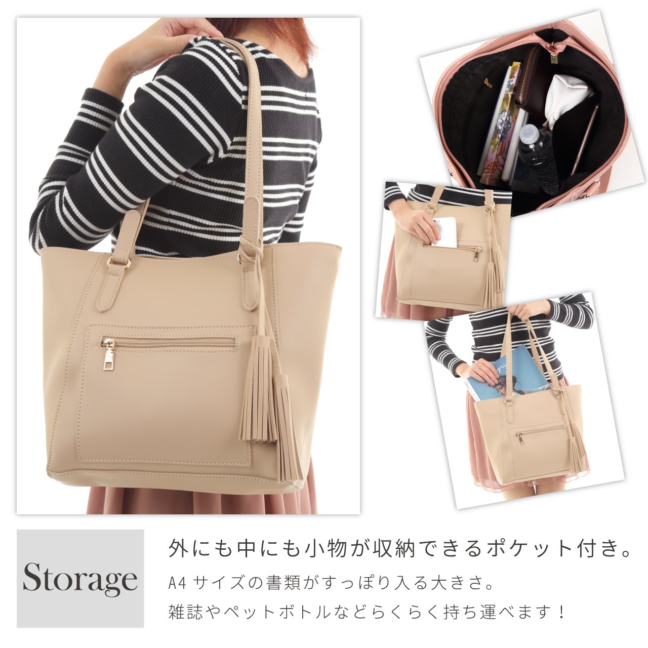 Since the zipper zipper is attached to the bag, things inside do not jump out.