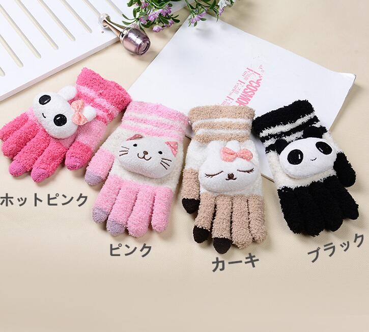 スマホ対応 パンダ ニット手袋 女性用 フ