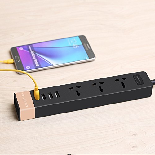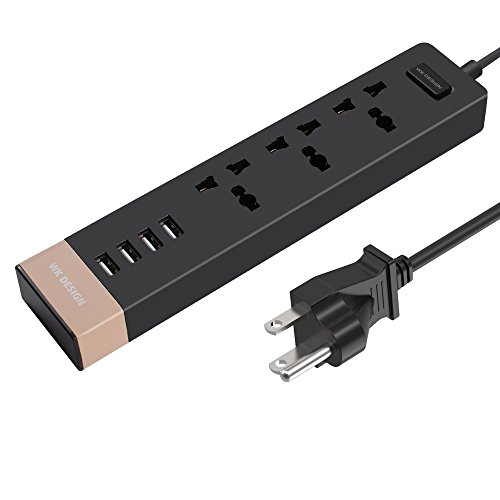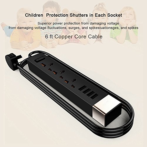 Vstart Portable Power Strip with on off switch, 3 AC Outlets Universal Power Socket Plugs Surge Protector with 6-Foot Cord and 4 USB Charger Ports (Black)