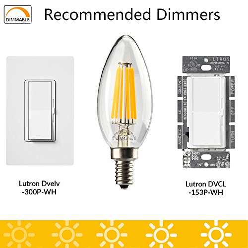 TECHNICAL FEATURES - E12 Candelabra Base Dimmable LED Filament Bulb,UL Listed,AC 120V, The Best Recommended Dimmer is Lutron DVCL-153P-WH Diva