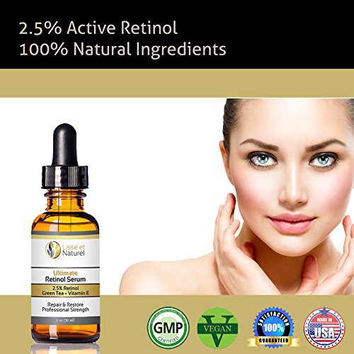 Professional strength retinol serum clinical strength 2.5% retinol eye face neck and body serum in hyaluronic acid with antioxidants, vitamin a, vitamin e, organic jojoba oil & wild green tea. used by dermatologists professional treatment for dark spots, under eye circles, wrinkles, fine lines and stretch marks. best serum to stimulate collagen and elastin formulated to stimulate collagen, elastin, promote youthful skin tone, texture, color and reduce the appearance of fine lines and wrinkles. use it at home to treat uneven skin pigmentation, dark spots, dark circles under eyes, fine lines and stretch marks. use it on your face, neck, chest or any other area puristica dark spot correcting serum is safe to use on your face, neck, decollete and works great as a dark circle eye treatment. it's 72% organic base of all natural moisturizers is power packed with vitamins that stimulate collagen leaving your skin fresh, bright and healthy. only freshest and best ingredients this unique product is a small batch formulation from our state-of-the-art FDA registered lab. it's all-vegan 72% organic non-GMO and does not contain alcohol, parabens, sulfates, mineral oils or any cheap "filler" ingredients. not tested on animals.Feature