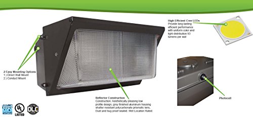 45,000 HOUR LIFETIME - With an amazon life rating of 50,000 hours, replacing your wall lights is now a thing of the past. The Superior LED wall pack is ideal for overnight security, commercial entrances, and overhead door lighting applications.
