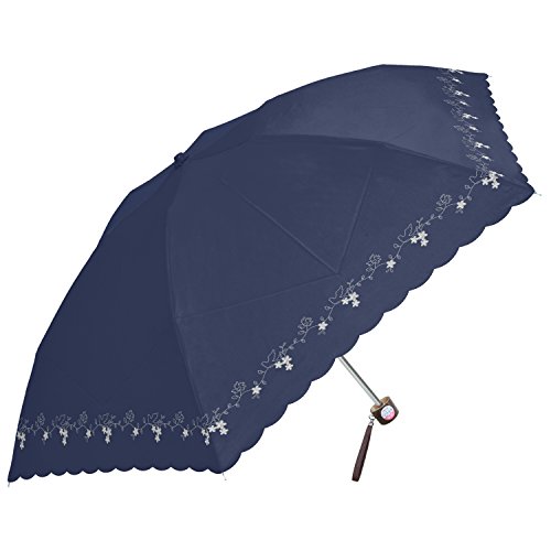 -. Title : ミクニ プチつた刺繍スカラップ 全3色 折りたたみ傘 手開き 日傘/晴雨兼用 6本骨 50cm UVカット グラスファイバー骨 木製ハンドル