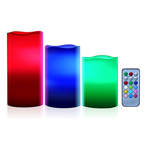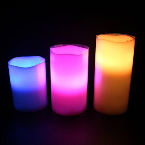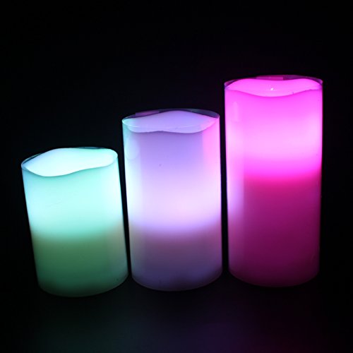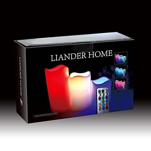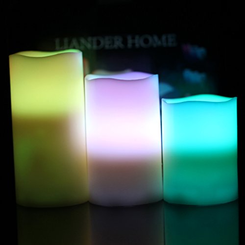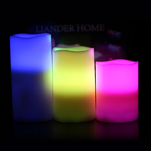 Flameless glow candles Remote Control - electric candles, Set of 3 battery operated &12 Color Settings Ivory Wax Pillar Candle - by LIANDER HOME