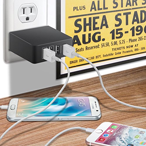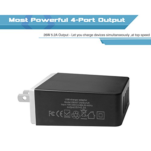 [4 USB Port Charger] Our 4 USB ports have 26W/5.2A power and allows you to charge four apple devices simultaneously at top speed. One charger fits for a whole family.