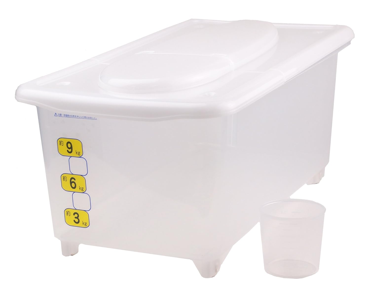メーカー型番:H-5543 サイズ:(約)幅240×奥行455×高さ200mm 重量:(約)700g 容量:ストッカー/(約)13.5L、計量カップ/(約)180ml 材質:ポリプロピレン(耐熱温度120度、耐冷温度-20度) 原産国:日本