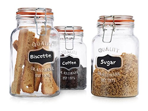 - Chalk Quality Canister Set Of 3 Clear Glass Round Jar with Hermetic Seal bail & Trigger Lids for Kitchen - Food Storage Containers
