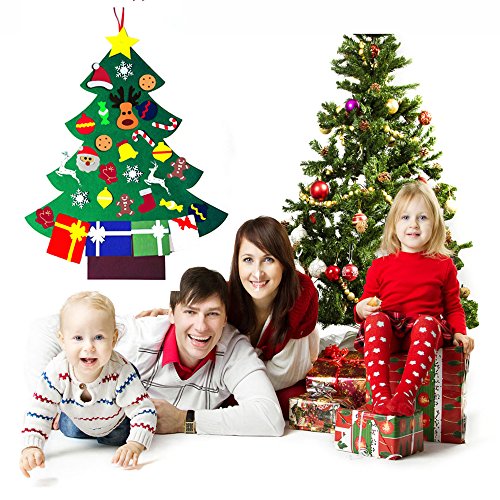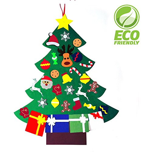 3FT Felt Christmas Hanging Tree Set with 30 PCS Ornaments for Xmas Gifts New Year DIY Door Wall Velcro Decorations Handmade Kids,Toddlers, Offices, Homes and Schools