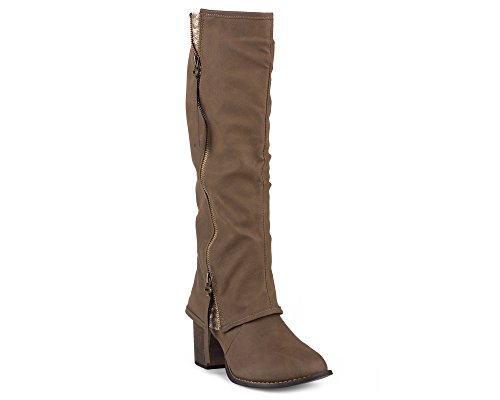 -. Title : Twisted Womens Tall Zipper Insert Kitten Heel Fashion Boot with Sequin Underlay