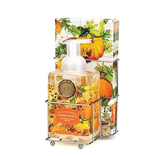 This convenient caddy holds a foaming hand soap and one package of hostess napkins, making your counters both neat and beautiful for family and guests. Michel Design Works was created by Bruce & Deborah Michel in the early 1980s. The first product was an elaborate "memory book" called our country diary. Still a favorite today, it is filled with vintage artwork, quirky quotes, notable dates and plenty of room to record all the events of the year. Our country diary will become a beautiful record of your family life. When they first created their signature elephant logo, it signified a remembrance of all things special. Although Michel Design Works has greatly expanded into bath & body, home fragrance and decor, when Bruce & Deborah remember and celebrate all of their wonderful customers and the company's history, it is even more fitting today! whether you are a new or a long-time friend, we welcome you to enjoy the art, Lather up with our English soaps, set an elegant table with napkins, candles, Plates, and serveware, and end your day with wonderfully fragrant bubble bath.Feature