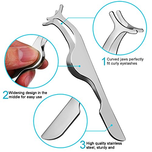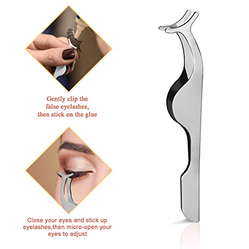-. Feature : False eyelashes clip tweezer: made of durable stainless steel and alloy, each one wrapped individually / Unique design: using ergonomics multifunctional design, you can paste the false eyelashes easier, more comfortable, clean / Size: 10.5 x 1.5 cm/ 4.13 x 0.59 inch, they are good helper for you to wear on or take off the false eyelashes, adjust or repair your false eyelashes / Wear on: clip the false eyelashes along the front end of the tweezers radian, then daub the eyelash glue on the roots of false eyelashes and paste into the original eyelash root / Removal: put index finger and thumb on middle wide part of the clamp, clip the false eyelashes end, it will pry P.R.Imary eyelashes gently, then detach slowly