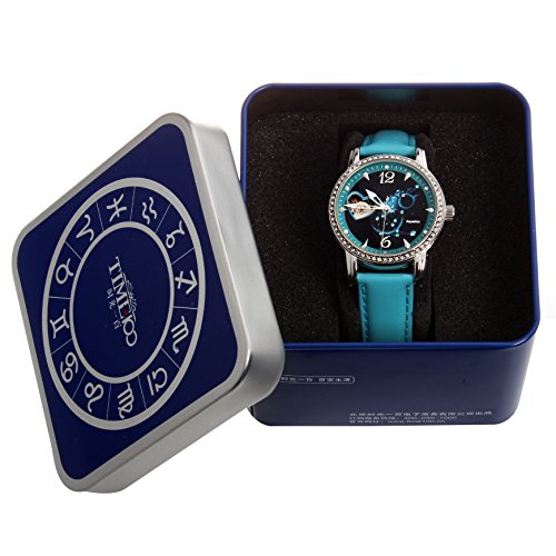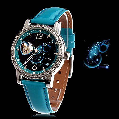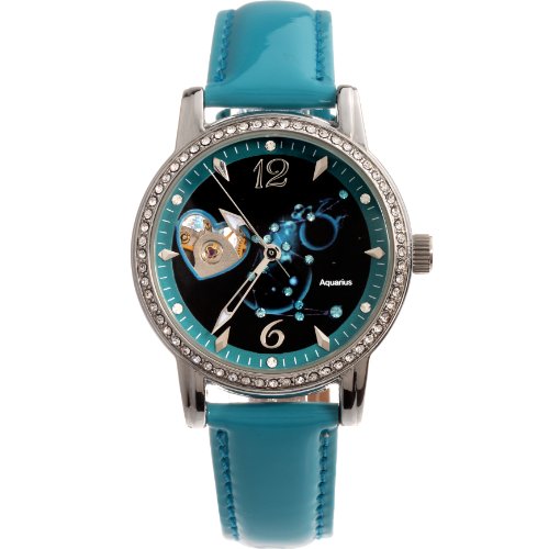 -. Title : Time100 Constellation-Aquarius Genuine Leather Strap Mechanical Ladies Watch #W80050L.11A