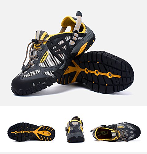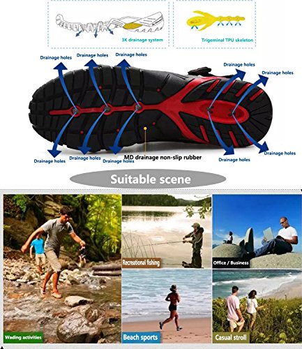 Womens wading shoes size description: 35 EU Size=5.5B(M)US Size=220 mm/8.66 inches 36 EU Size=6.5B(M)US Size=230 mm/9.05 inches 37 EU Size=7 B(M)US Size=235 mm/9.25 inches 38 EU Size=7.5 B(M)US Size=240mm/9.45 inches 39 EU Size=8 B(M)US Size=245 mm/9.65 inches 40 EU Size=8.5 B(M)US Size=250 mm/9.84 inches Mens wading shoes size description: 39 EU Size=7 D(M)US Size=245 mm/9.65 inches 40 EU Size=7.5 D(M)US Size=250 mm/9.84 inches 41 EU Size=8 D(M)US Size=255 mm/10.04 inches 42 EU Size=8.5 D(M)US Size=260 mm/10.24 inches 43 EU Size=9.5 D(M)US Size=265 mm/10.43 inches 44 EU Size=10 D(M)US Size=270 mm/10.63 inches 45 EU Size=10.5 D(M)US Size=275 mm/10.83 inches 46 EU Size=11 D(M)US Size=280 mm/11.02 inches 47 EU Size=11.5 D(M)US Size=285 mm/11.22 inches OUYAJI athletic wather shoes which made with lightweight mesh and leather also a midfoot webbing system that integrates with slip on for lightweight breathability and an adaptive, supportive fit. Soft cushioning EVA insole,Breathable and slip resistant outsole with hole grip the water offer you quick dry for your foot. Sole drainage holes, high-density nano-steel mesh and rubber deep combination of effective protection of the soles not be injured. 0 |