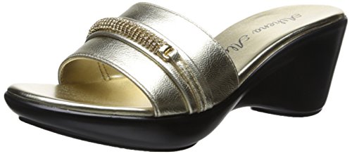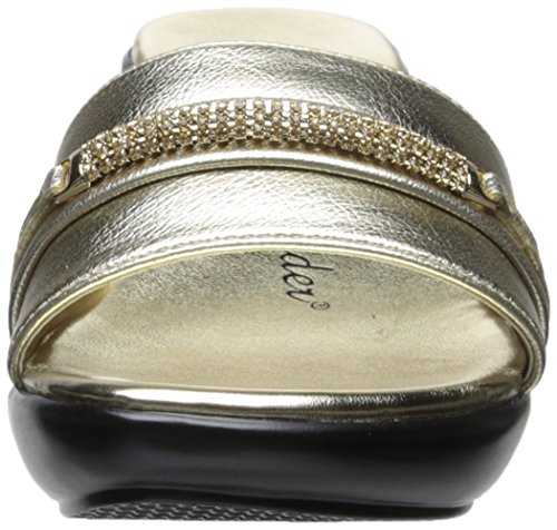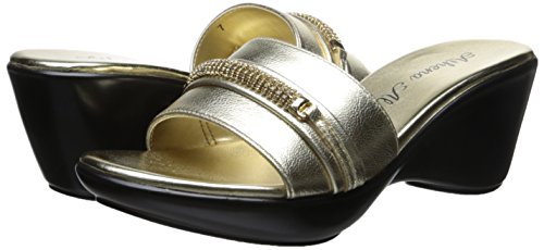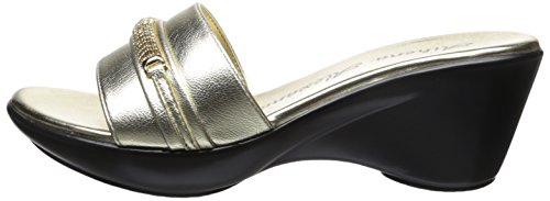 Product DescriptionA band of glinting crystals shimmers atop the strap of an easy slide sandal lifted by a sculpted wedge and platform.0