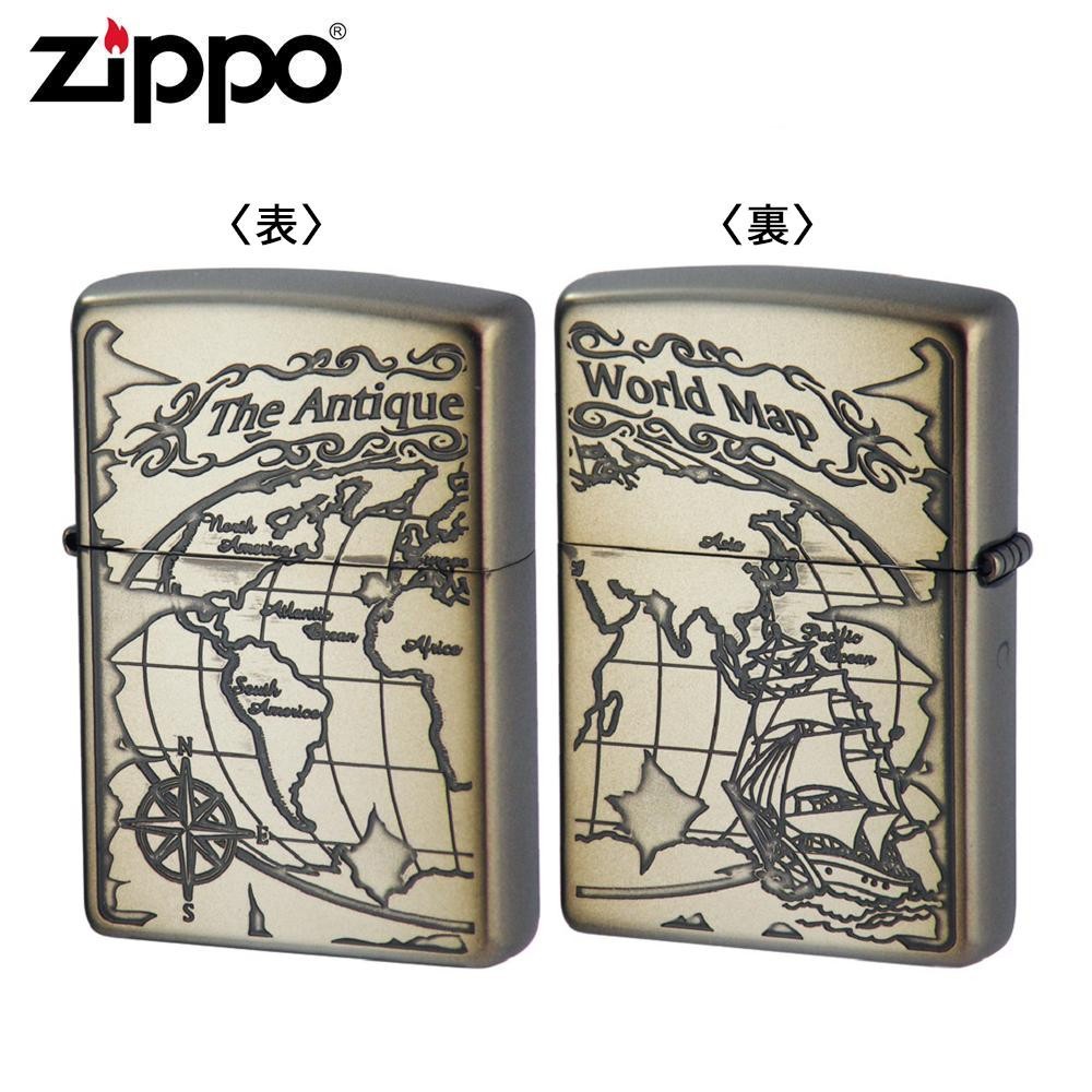 両面にワールドマップを描いたZIPPO。新たなスタートを切る方へのプレゼントにもオススメです。イブシ加工もアンティーク感の演出に一役買っています。 |