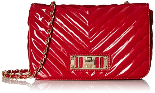 Glossy faux-leather cross-body bag with chevron quilting and gold-tone hardware