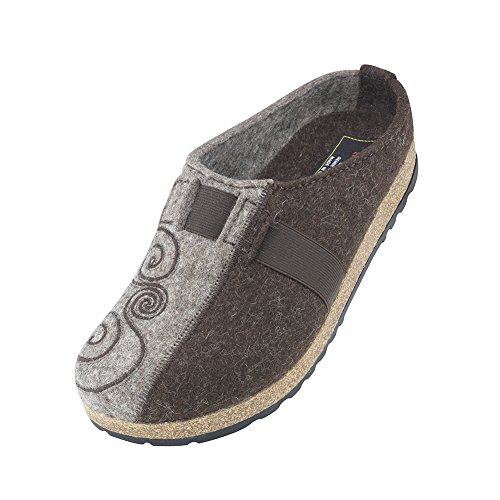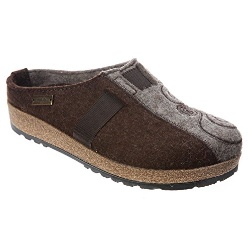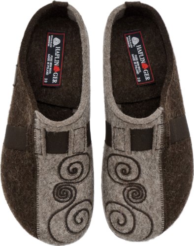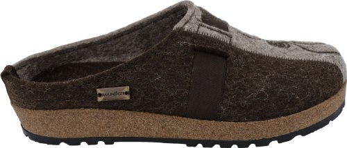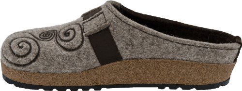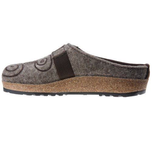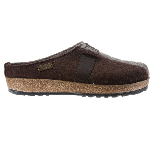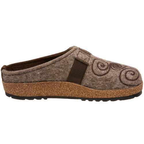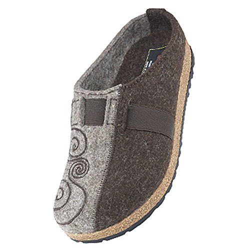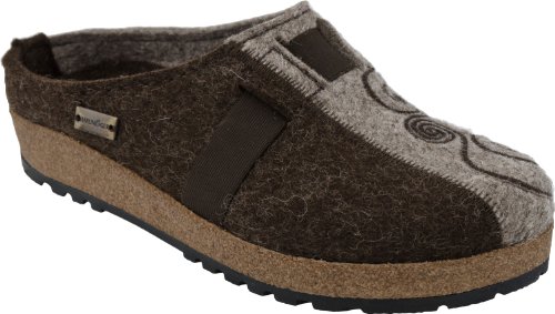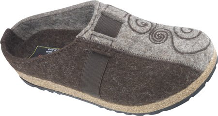 Amazon.com Get back to the basics with this Magic clog from Haflinger. This earthy look features a two-tone upper with swirly embroidery and a stretchy elastic strap, while the cork midsole absorbs shock and the rubber outsole adds great grip. 0