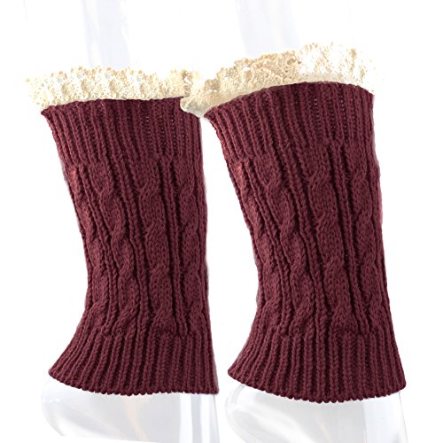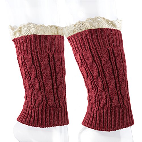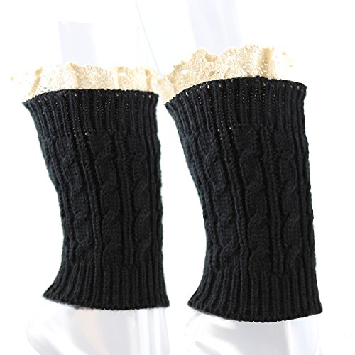 The Hat Depot 700BC-7 Womens Knit Boot Cuff With Ivory Lace-9colors