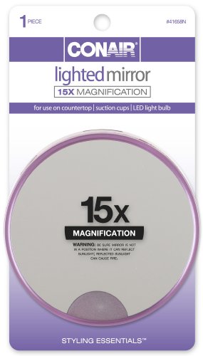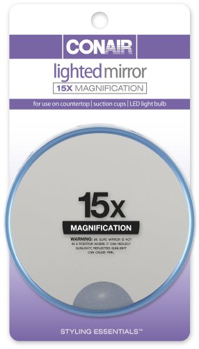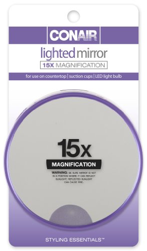 Conair 15x Magnification Lighted Suction Cup Mirror, Colors May Vary (Pack of 2)
