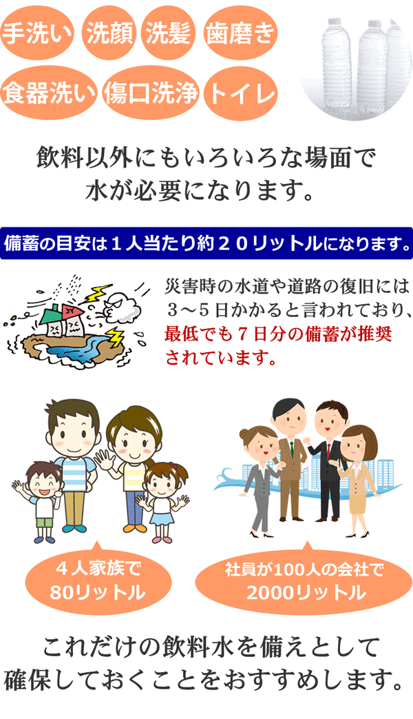 長期保存用ミネラルウォーター、軟水、避難グッズ、防災グッズ、避難用品、防災用品、保存食、2リットル、500ミリリットル、ほぞんすい、びちくすい、ちょうきほぞんすい