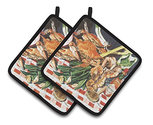 Caroline's Treasures Crab Boil Pair of Pot Holders 8537PTHD, 7.5HX7.5W, Multicolor