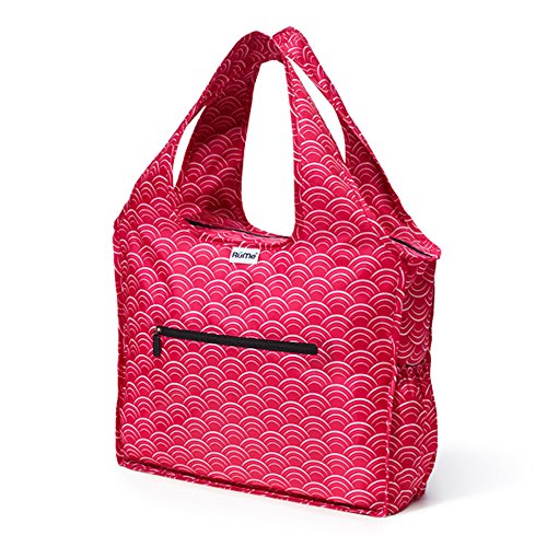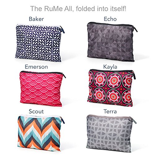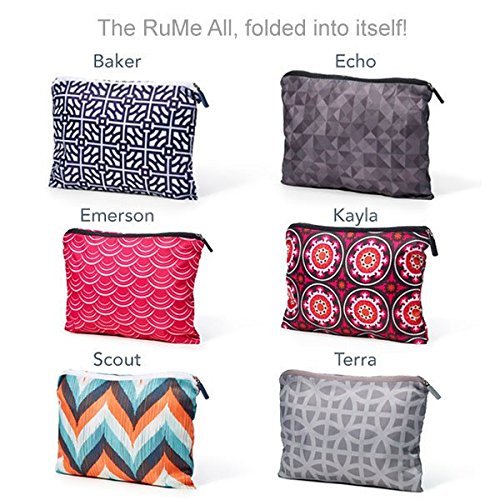 Product Description This tote has it all! Innovative features, functionality and style. That's why we call it the RuMe All! In fact, this bag is so beloved that many customers order one of every pattern. At under three ounces, the lightweight RuMe All won't weigh your shoulder down as you carry around your everyday essentials, such as makeup, a tablet, your wallet and a cardigan for those chilly days. The top zips shut for added security. Two side pockets keep your water bottle and snacks easily accessible. The front pocket also zips shut - perfect for keys and your cell phone (no more digging around the bottom of your purse as it rings). When not in use, the RuMe All folds down into the front pocket and zips shut for easy storing. Looking for a tote that can keep up with your everyday adventures? This bag has it All! 0