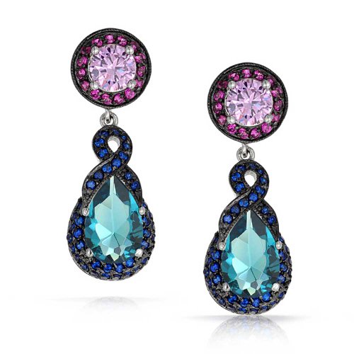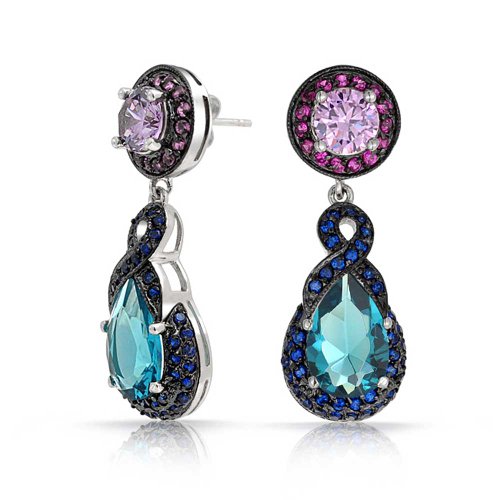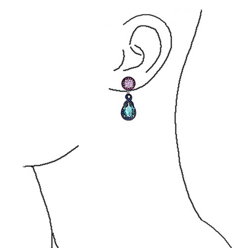 The colors of the rainbow come to light in this stunning pair of multicolor CZ earrings made with Black Rhodium Plated Brass. What a perfect way to express your love of brilliant color. As the focal point of the earring, the Simulated Blue Topaz CZ stone is simply sensational. In addition to being the traditional stone for people who celebrate a birthday in December, the Simulated Blue Topaz is reputed to inspire creativity and enhance concentration. The color is captivating and the combination of colors in this pair of CZ Simulated Sapphire chandelier earrings is unmatched. At this very affordable price, order several pairs for friends with pierced ears who share your love for nice colorful jewelry.Feature
