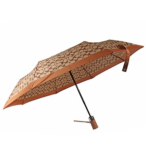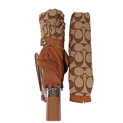 -. Title : Coach Signature Umbrella Retractable Signature Khaki Saddle