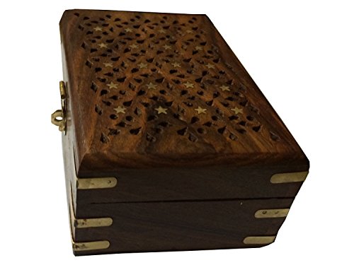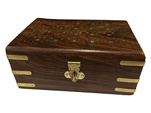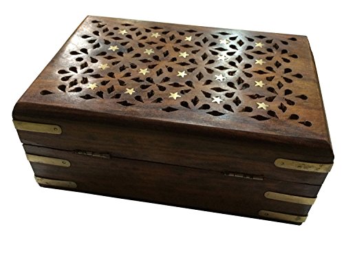 Valentines Presents, Wooden Jewelry Box, Brass Inlay Unique Star Design, Wooden Jewelry Box, Vintage Box, Hand Carved Decorative Wooden Jewelry Trinket Holder, 8 X 5 Inch