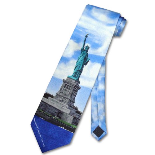 Binding : Apparel Product Description This listing is for a Brand New Statue of Liberty Neck Tie 100% SILK NeckTie. The Statue of Liberty officially titled Liberty Enlightening the World, dedicated on October 28, 1886, is a monument commemorating the centennial of the signing of the United States Declaration of Independence, given to the United States of America by the people of France to represent friendship between the two countries established during the American Revolution.? The statue is made of a sheathing of pure copper, hung on a framework of steel, with the exception of the flame of the torch, which is coated in gold leaf (originally made of copper and alter altered to hold glass panes).? It stands atop a rectangular stonework pedestal with a foundation in the shape of an irregular eleven-pointed star.? The statue is 151 ft (46 meters) tall, but with the pedestal and foundation, it is 305 ft (93 m) tall. The necktie is part of the "Our Heritage Collection: American Architectural Wonders" by Addiction Premium Gifts. We have more variety of Silk Neckwear NeckTies in our other listings. Check out our other collection of Silk Neck Ties. 0
