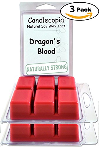 Candlecopia Dragon's Blood Strongly Scented Hand Poured Vegan Wax Melts, 18 Scented Wax Cubes, 9.6 Ounces in 3 x 6-Packs