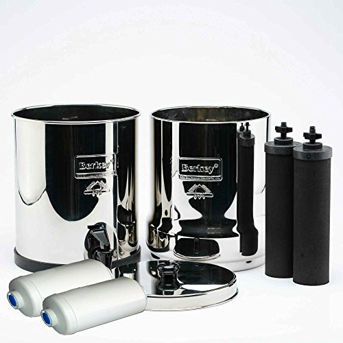 Healthy Bundle includes Berkey System, 2 Black BB9 Purifiers, 2 White Fluoride Filters, Berkey Keepsake Crate