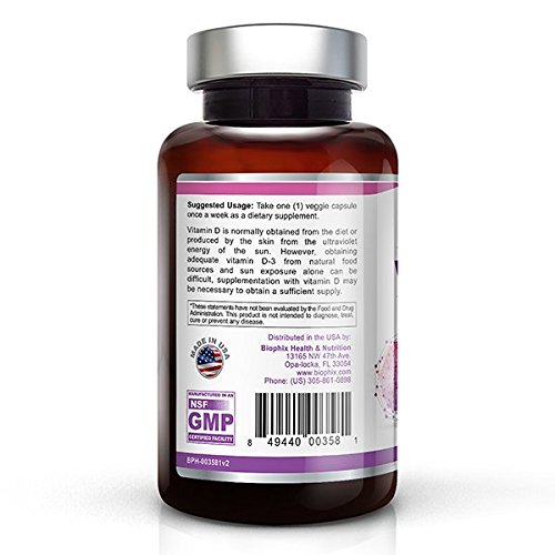 -. Binding : Health and Beauty -. Brand : biophix -. EAN : 0849440003581 -. Feature : Manufactured to the Highest Quality Available / Satisfaction Ensured / Great Gift Idea -. Label : Biophix -. LegalDisclaimer : This information is intended for your general knowledge only and is not substitute for professional medical advice or treatment for specific medical conditions. This information is not intended to diagnose, treat, cure or prevent any disease. Always seek the advice of your qualified physician or other health care provider with any questions you may have regarding a medical condition. Keep out of reach of children. -. Manufacturer : Biophix -. MPN : 0849440003581 -. NumberOfItems : 1 -. PackageQuantity : 1 -. PartNumber : 0849440003581 -. ProductGroup : Health and Beauty -. ProductTypeName : HEALTH_PERSONAL_CARE -. Publisher : Biophix -. Studio : Biophix -. Title : Biophix Vitamin D-3 50,000 IU 240 Vcaps -. UPC : 849440003581