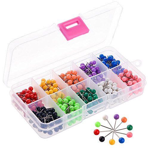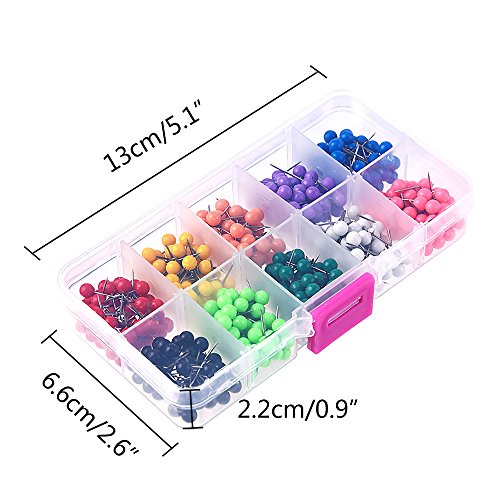Zealor Push Pins, 1/5 Inch Map Tacks with 10 Assorted Colors, 500 Pieces