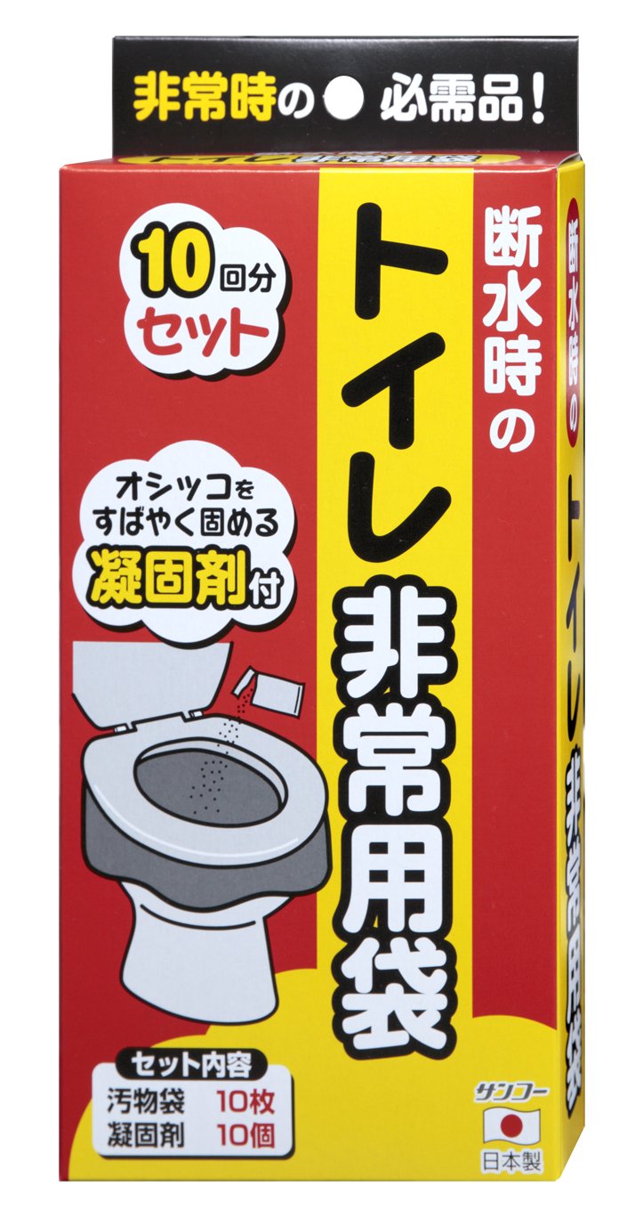 ● Emergency bags with toilet with coagulant that can also be used for western style toilets when in emergency or water outage