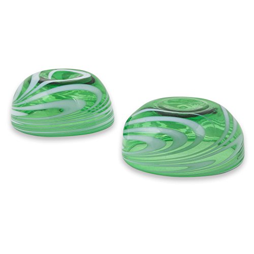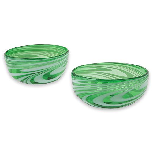 NOVICA Hand Blown Green Glass Bowls, 11 oz. 'Whirling Emerald' (pair)