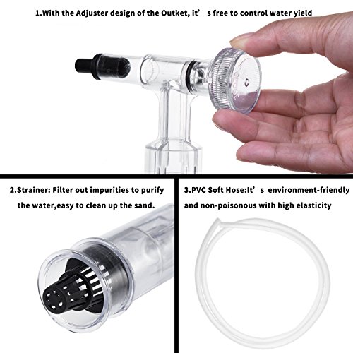 Studio : EletecPro Publisher : EletecPro Binding : Misc. Product Description ★Note If it stucks, clean the strainer and put the discharge hose downwards inside the container. ★Package content: 1 x EletecPro Aquarium Cleaner Fish Tank Gravel Cleaner Siphon Pump Water Changer ★Instructions for use 1. Connect the cylinder with hose with the connection part. 2. Rotate the flow adjuster in a counter clockwise direction. 3. Put the discharge hose to a container lower than the surface of the water. 4. Submerge cylinder into the water and Hold the CONNECTION PART shake it up and down to start. 5. When the water starts flowing, You can not need to shake, then you can control the water flow with the flow adjuster what you needed. 6. Move the cylinder to another place to keep cleaning when the water become clear. ★EletecPro Aquarium Cleaner Fish Tank Gravel Cleaner Siphon Pump Water Changer is you perfect choose for cleaning up your aquarium. 0