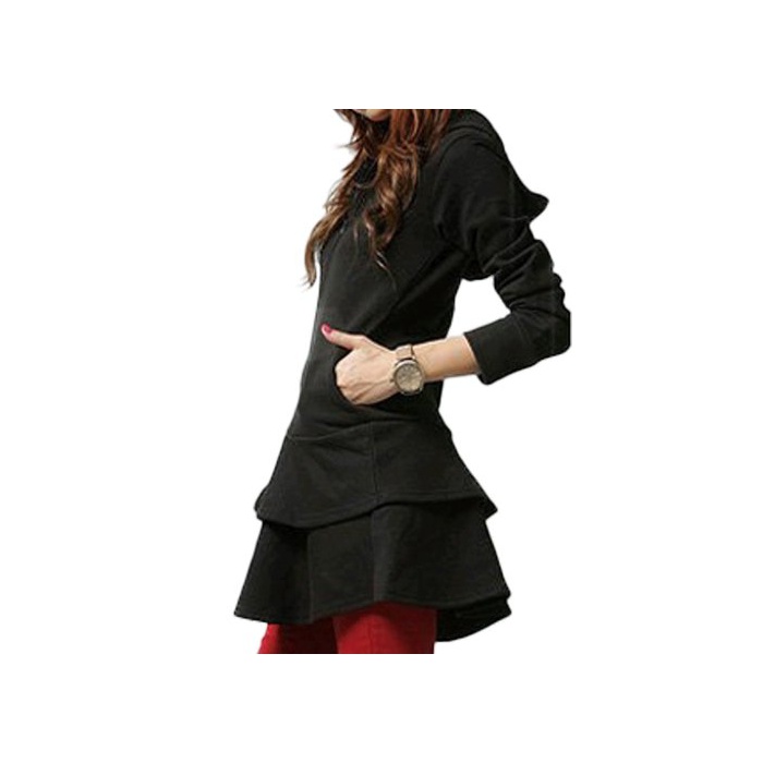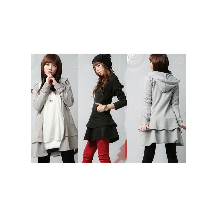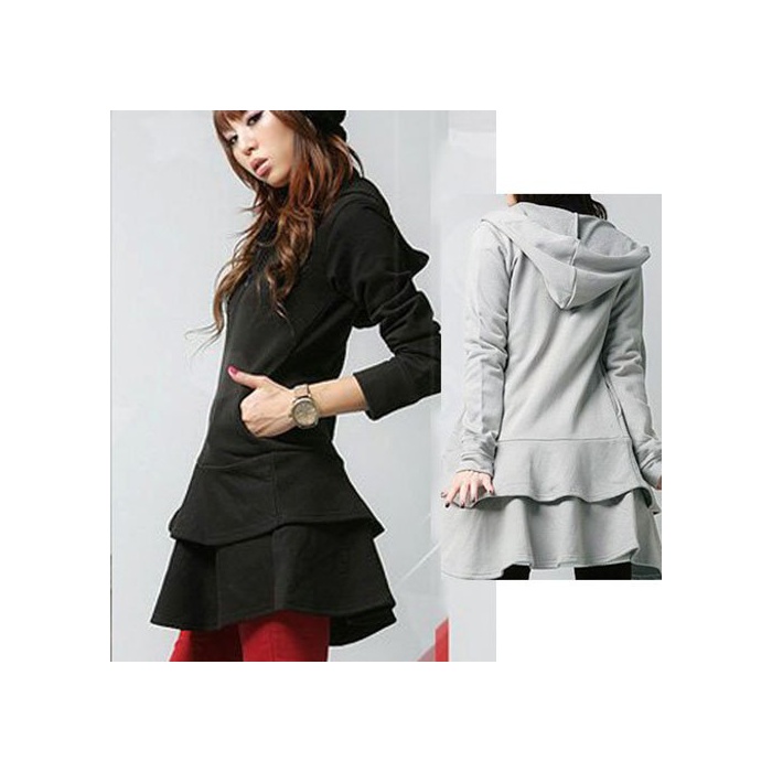 (Goldjapan)골드 재팬 (골드 재팬)Goldjapan 큰 사이즈 레이디스 롱 길이 파커 원피스 프릴 2 단프릴 플레어 스커트 flare 무지 심플 스포티 캐주얼 블랙 그레이 흑회색 black gray 춘